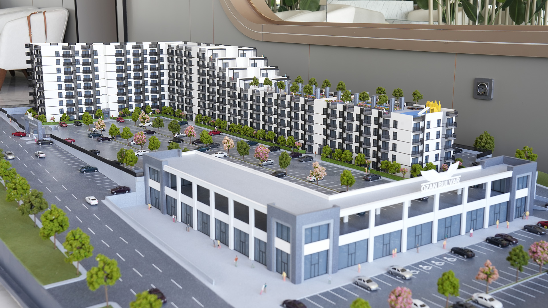 Cadde boyunca uzanan geniş vitrinli ticari birimler günlük ihtiyaçları karşılarken, arka bloktaki konutlar huzurlu ve güvenli bir yaşam sunuyor.