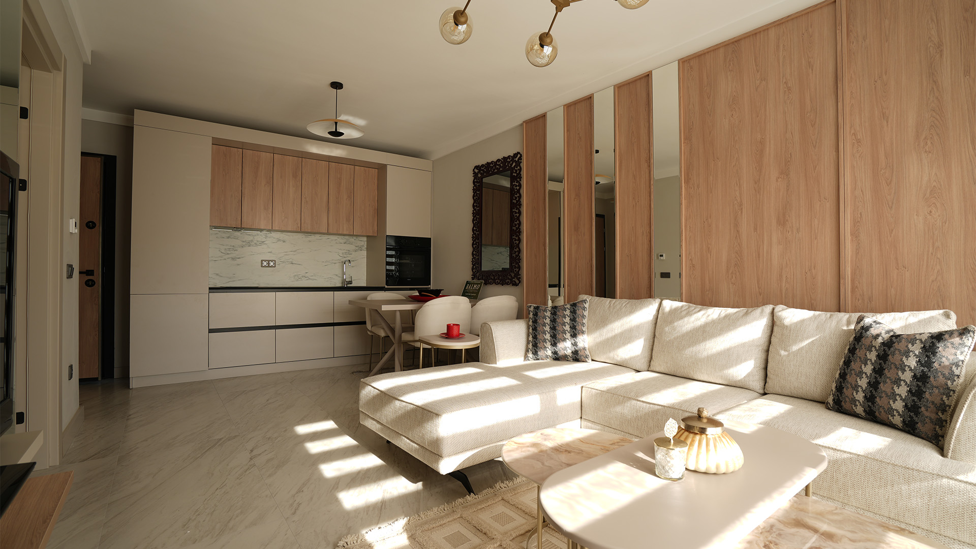 Modern çizgilerle harmanlanan bu tasarım, sadece görsel bir şölen değil; aynı zamanda ferah, hareketli ve işlevsel bir yaşam alanı yaratıyor.